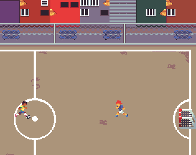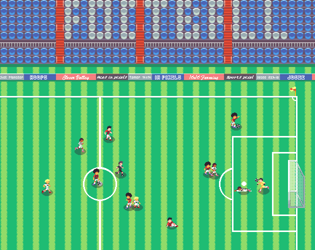 - Tileset: Several types of grass/turf, cement (street style), pitch lines, corner flags, and 3 types of goals/nets.
